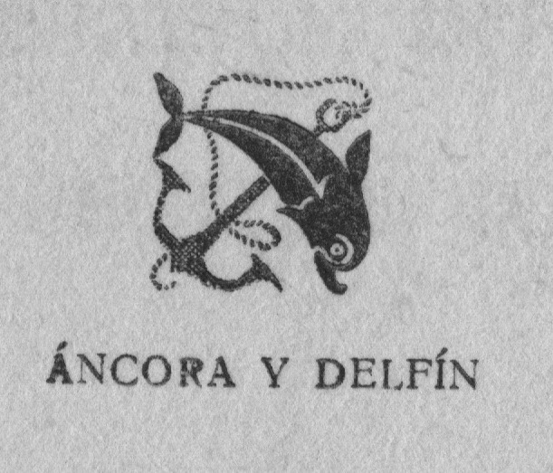 En el caso de Áncora y Delfín, el símbolo actúa como marca, ya que los elementos “ancla” y “delfín” tienen muchas connotaciones en el mundo de los bibliófilos, por ser los mismos elementos que utilizaba como imagen Aldo Manucio, posiblemente el primer impresor de libro, en lo que ahora llamamos de bolsillo, en el siglo XV.