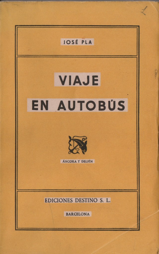 Viaje en autobús de José Pla es el primer volumen que lleva como color de fondo de su cubierta el color amarillo, por el título podíamos identificar el color, pero para añadir algo más de información, en el prólogo que el autor titula Cuatro palabras , escribe: –En el curso de mi vida literaria, he escrito varios libros de viaje.–