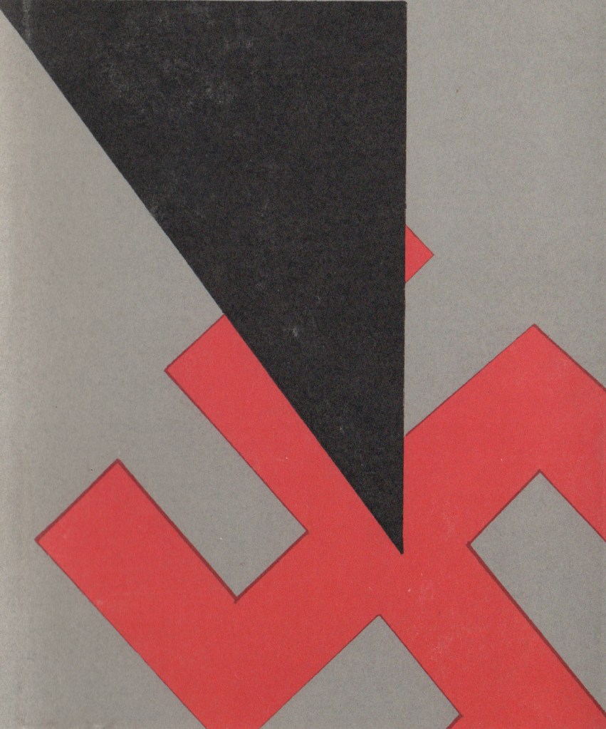 Según mi criterio, el autor de esta ilustración conocía seguramente la obra de El Lissitzky, sobre todo, dos obras: el cuento infantil suprematista, titulado Dos cuadrados en seis construcciones, donde el autor nos presenta la historia de dos cuadrados: uno negro (representando a los bolcheviques) y otro rojo (símbolo de la nueva era). La otra, –una de sus más conocidas–, La cuña roja, El Lissitzky utiliza el color rojo para simbolizar la victoria, con el lema “Golpear a los blancos con la cuña roja”. El creador de esta sobrecubierta juega con las mismas formas geométricas y colores, sin embargo, aquí invierte los colores: es la cuña negra la que golpea el centro de la esvástica en rojo.