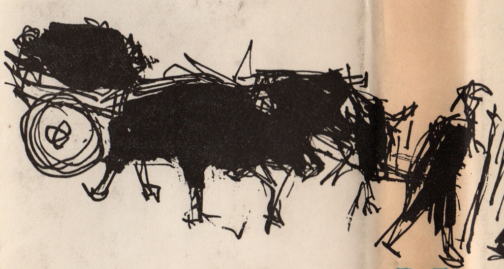 Es un ejemplo perfecto de ilustración de Bechtold, trazos negros intensos, casi nerviosos, que parecen moverse por la superficie, reflejan a la perfección la lucha constante y el esfuerzo de los personajes de Pinilla.