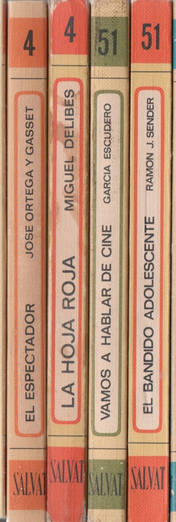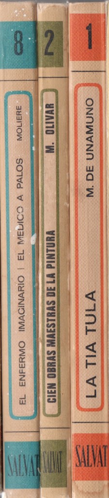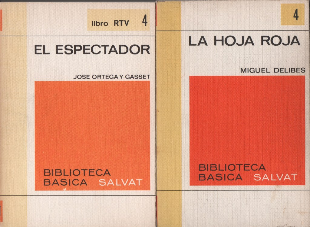 La mayoría de los que seguís este blog —amigos y lectores de una generación parecida— identificáis de sobra las cubiertas de la colección “RTV Biblioteca Básica Salvat; tan limpias, geométricas y repetitivas. El único cambio en su diseño era el color, muy llamativo en el elemento identificador y principal de la cubierta: un cuadrado, –efecto óptico– que en realidad no lo es (9,2 cm de ancho por 8,8 cm de alto).